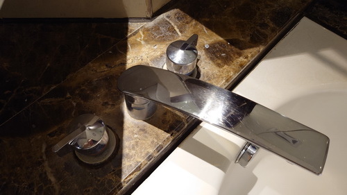 洗手檯是比較舊款的設計,
