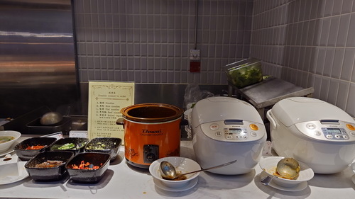 右邊角落是白飯與肉燥,因為現煮區所以還有辣椒、沙茶醬、蔥花與韭菜等配料,