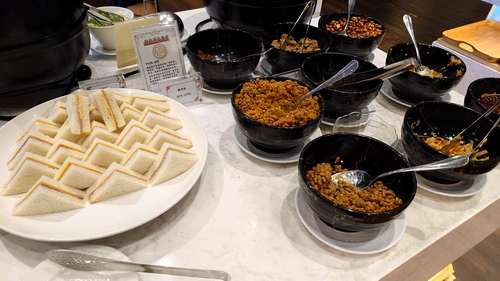 中央方桌第一塊是三明治與配粥料,