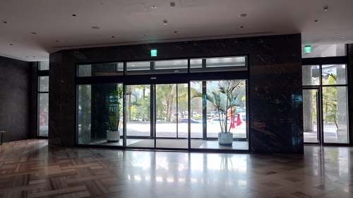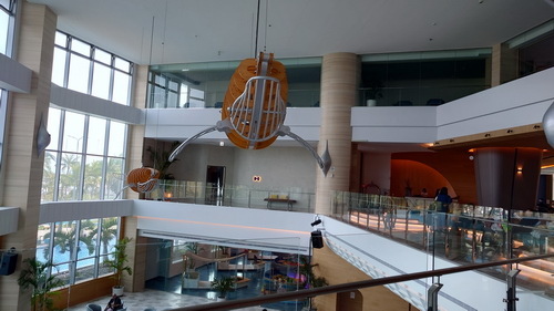鯨魚後方三層樓高的落地玻璃窗使整個1~3樓大廳白天不太需要燈光,