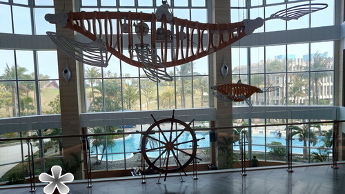 兩個吃東西的地方餐廳及咖啡廳都在這邊,中央空地有條魚尾巴,