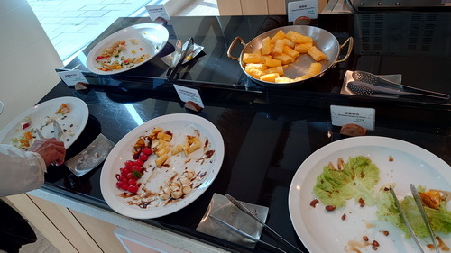 再轉彎是三種菜(沙拉)包括蘿蔓葉、通心粉沙拉和主廚沙拉,